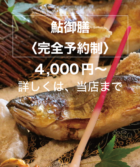 鮎御膳は完全予約制。4,000円〜